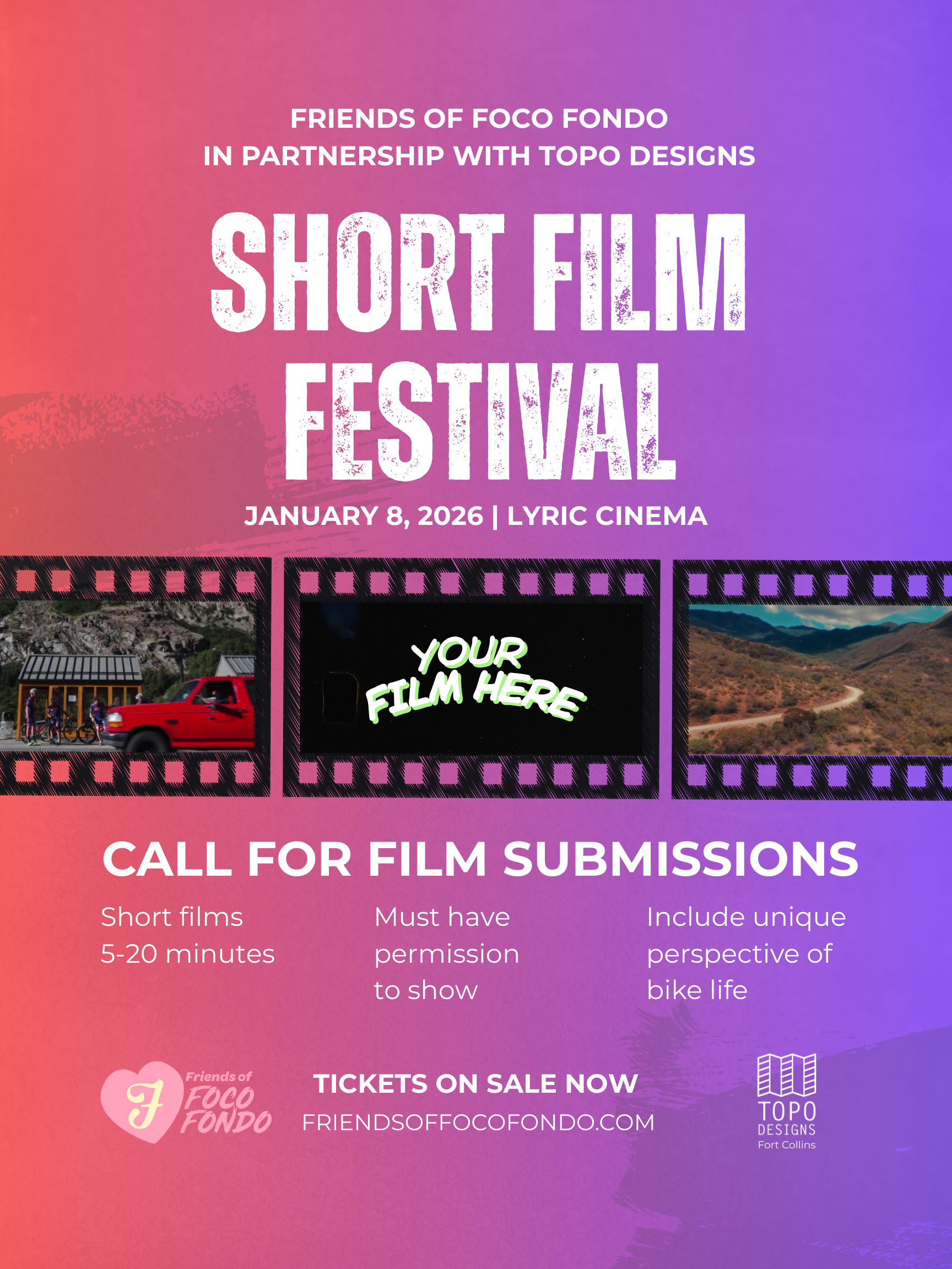 Join us in January to celebrate the love of the bike at our first Short Film Festival, presented by Friends of FoCo Fondo x Topo Designs.